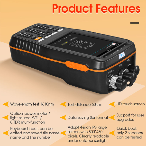 El AUA216A Smart OTDR con longitud de onda de 1610 nm es un reflectómetro óptico portátil diseñado específicamente para realizar pruebas en fibras activas (en servicio) sin interrumpir el tráfico de datos