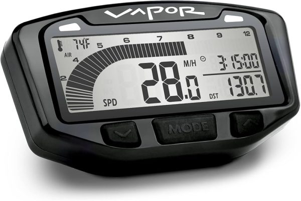 El gran gráfico de barras del tacómetro digital de Vapor es fácil de leer. Con un tamaño pequeño de 4,2 x 2,3 pulgadas, Vapor es perfecto para todo tipo de conducción, como cross country, trail o pista